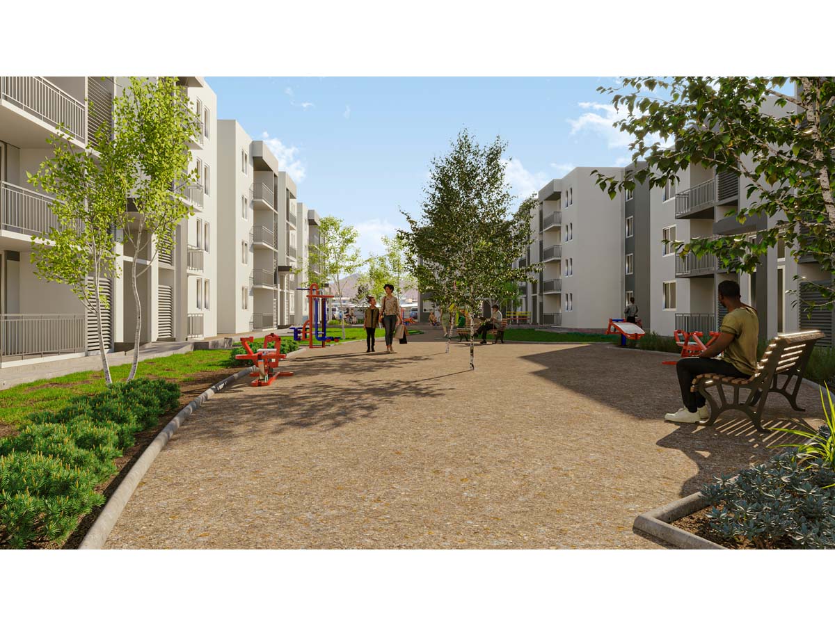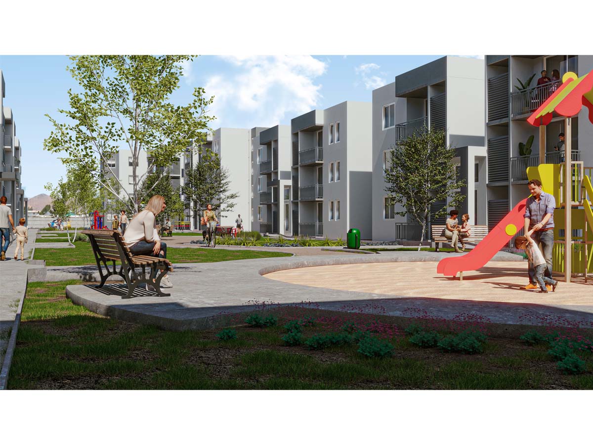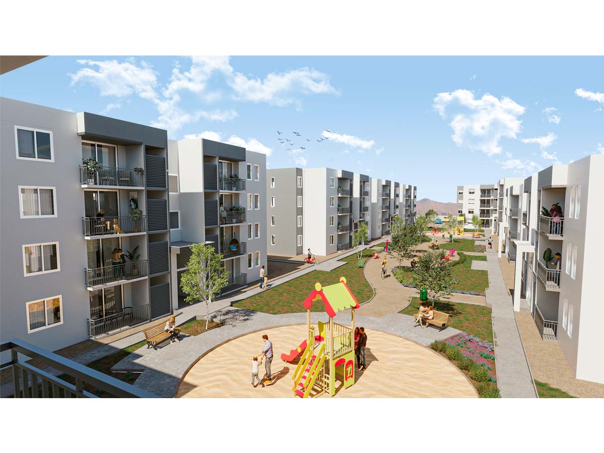 El condominio contempla departamentos distribuidos en tres edificios de 4 pisos y uno de 3 pisos y destaca por su diseño arquitectónico moderno y funcional, pensado para ofrecer comodidad, eficiencia y una excelente calidad de vida, replicando un modelo exitoso implementado en distintas comunas del país.