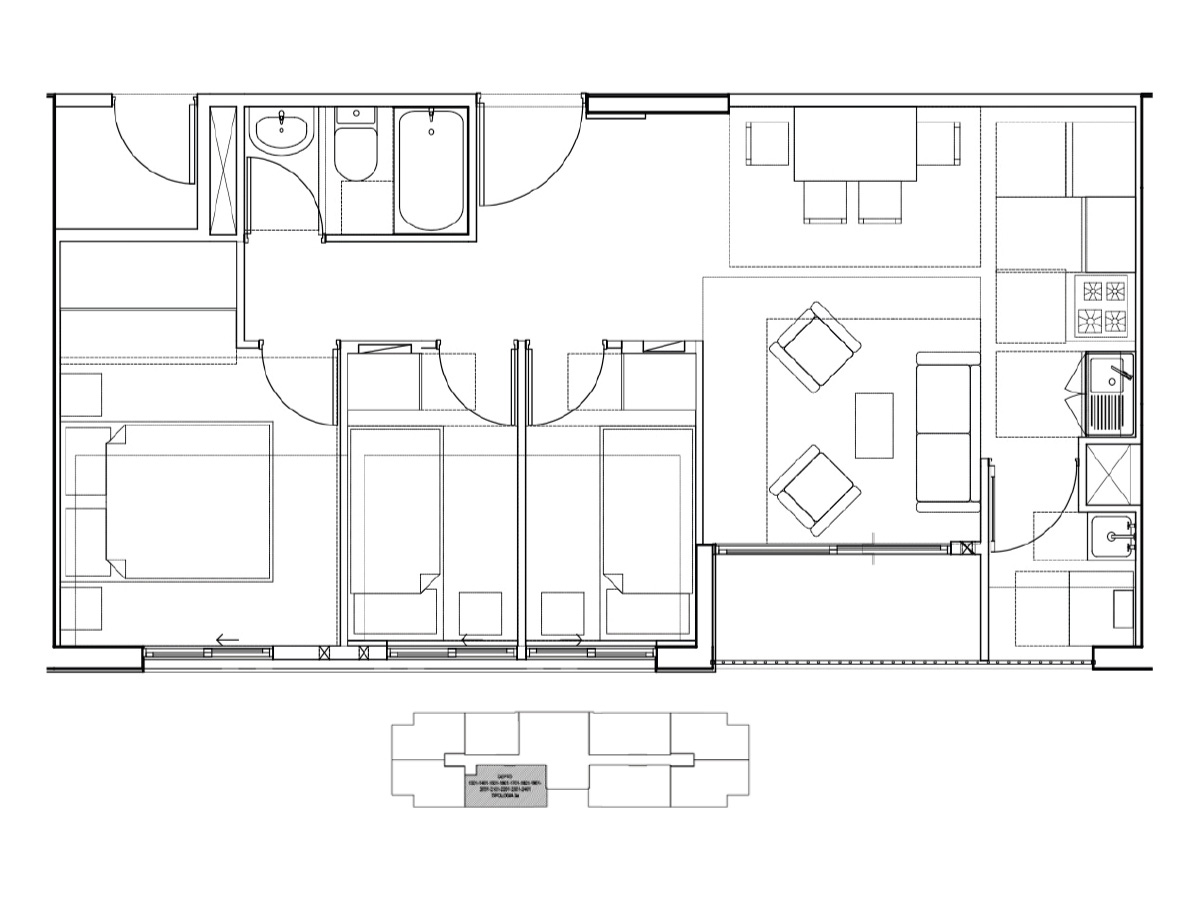 Las viviendas destacan por su alto estándar térmico y eficiencia energética, ideales para el clima del norte. Cada edificio cuenta con espacios comunitarios distribuidos en una placa de segundo nivel, que integran: