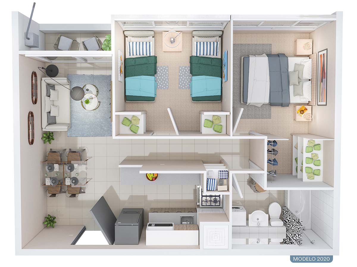 Las superficies varían según modelo, con opciones compactas para quienes buscan su primer hogar y alternativas más amplias para familias que requieren mayor independencia entre sus espacios.