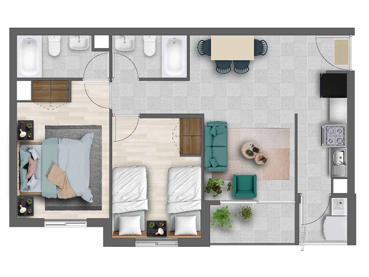 El proyecto contempla un edificio de 12 pisos más subterráneo, con 166 departamentos de 1, 2 y 3 dormitorios, diseñados para distintos estilos de vida y necesidades familiares.